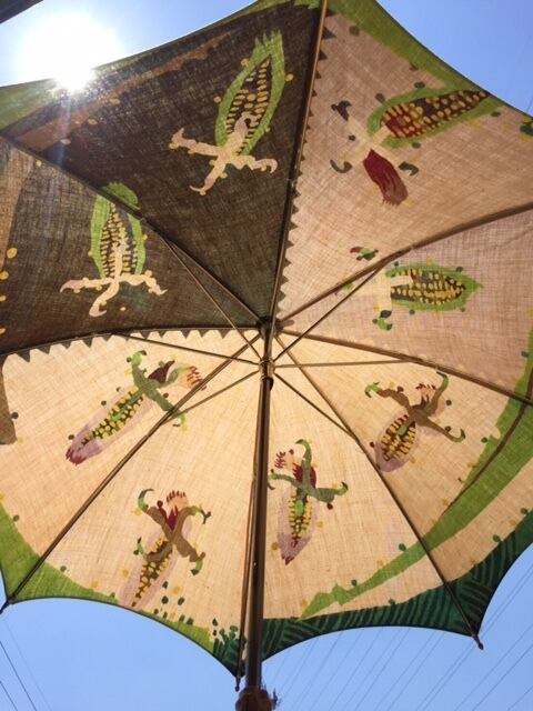 モロコシとピンボール柄日傘 麻生地 品番HG0001