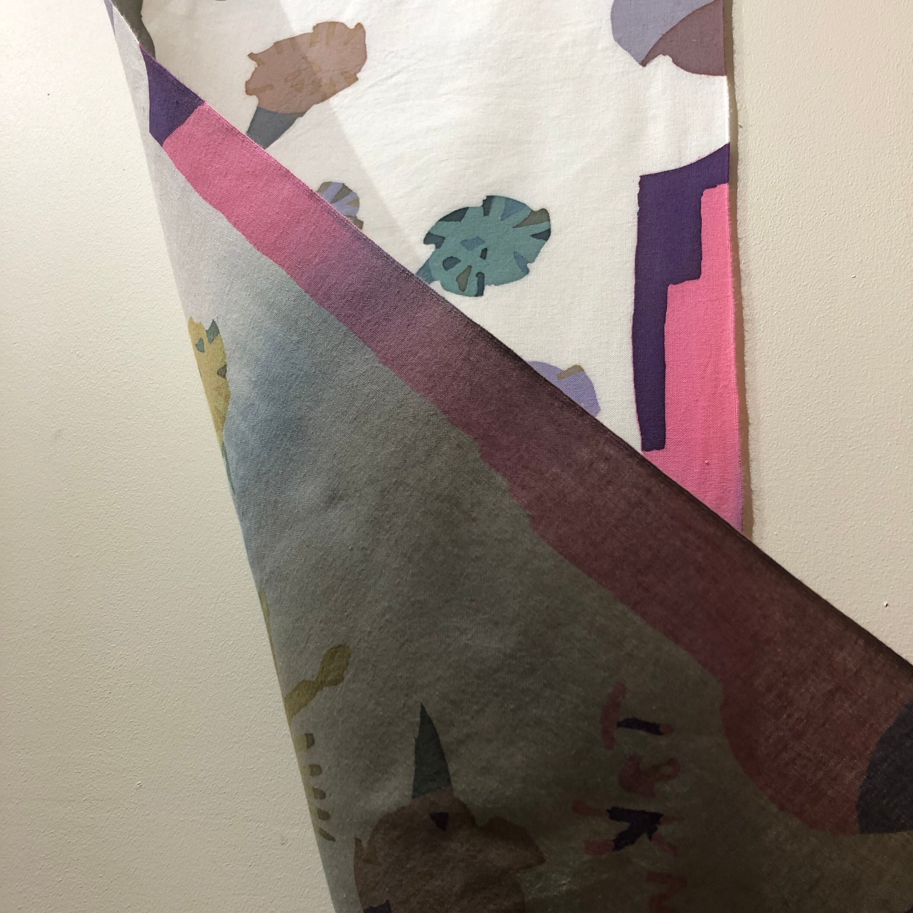 素材は綿で切りっぱなし、松とビリヤードをモチーフに染めています
