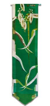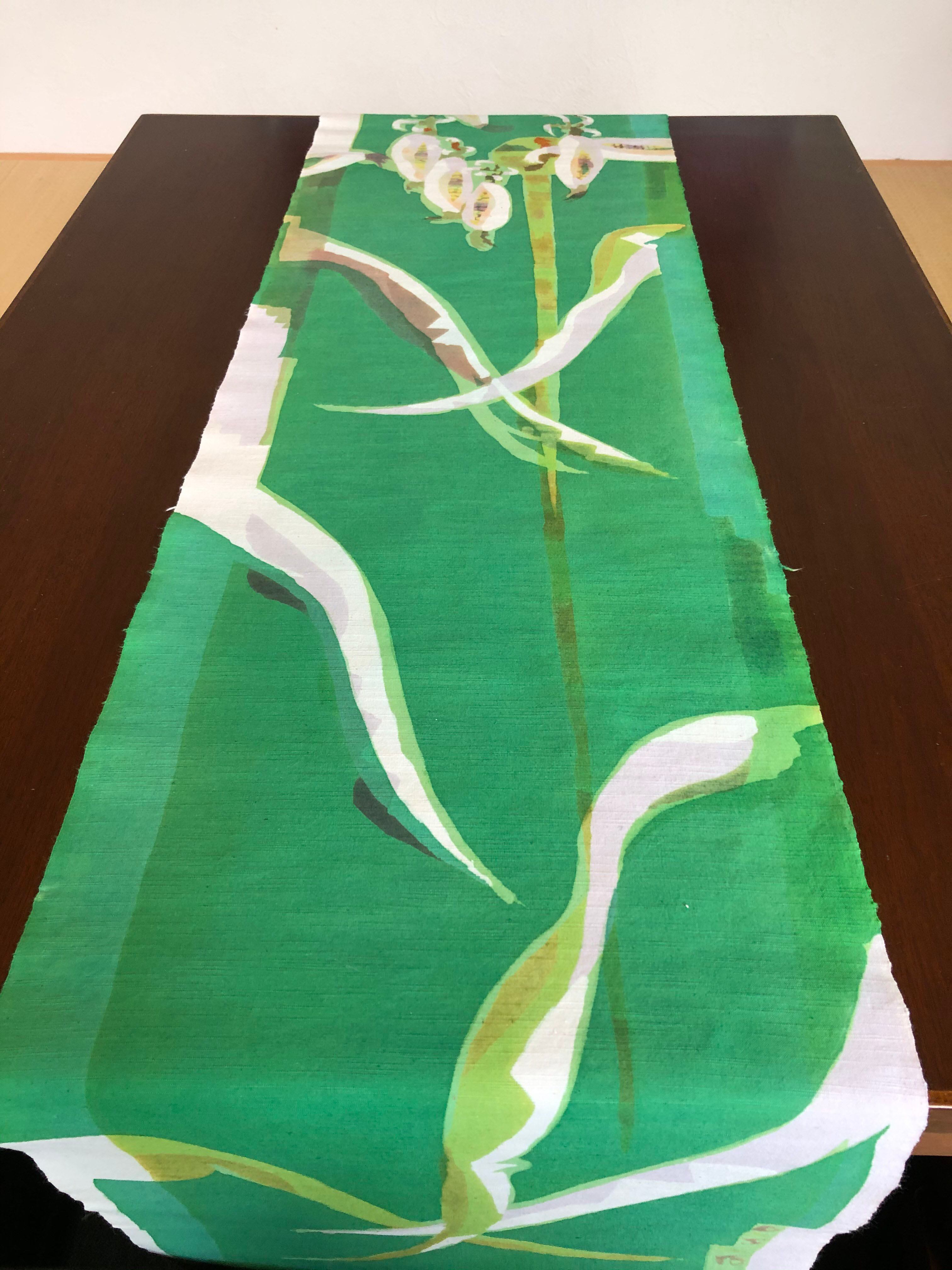 玉蜀黍とボーリングをモチーフにコットンの生地に染めています。 しっかりとした生地なのでタペストリーにもテーブルセンターにも使用可能です。 洗濯堅牢度も強いです。サイズH150CM×W40CM