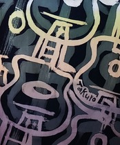 素材は綿で切りっぱなし、マカフェリギターをモチーフに染めています